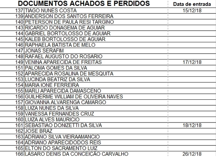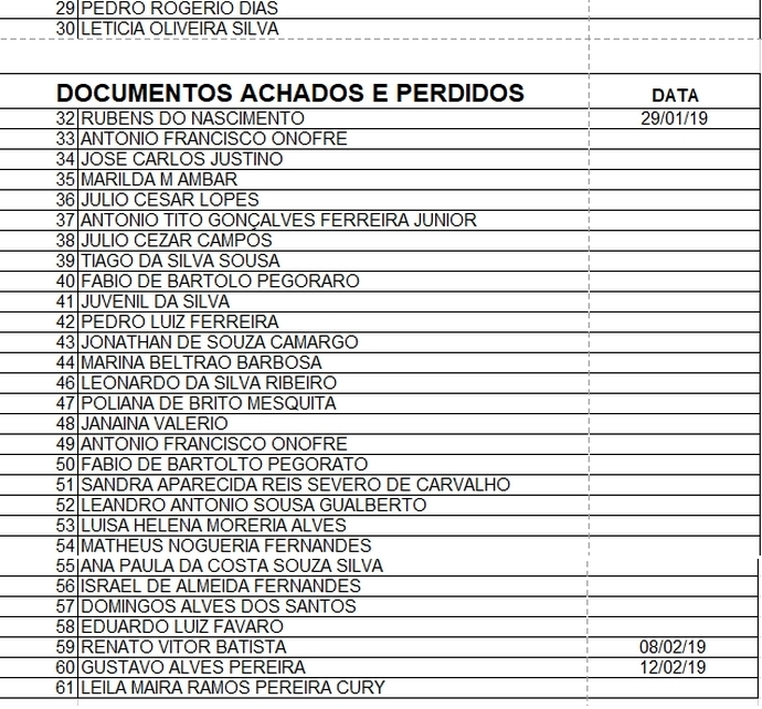 OS DOCUMENTOS ENCONTRADOS FICAM DISPONÍVEIS NO CORREIO CENTRAL DE VARGINHA.