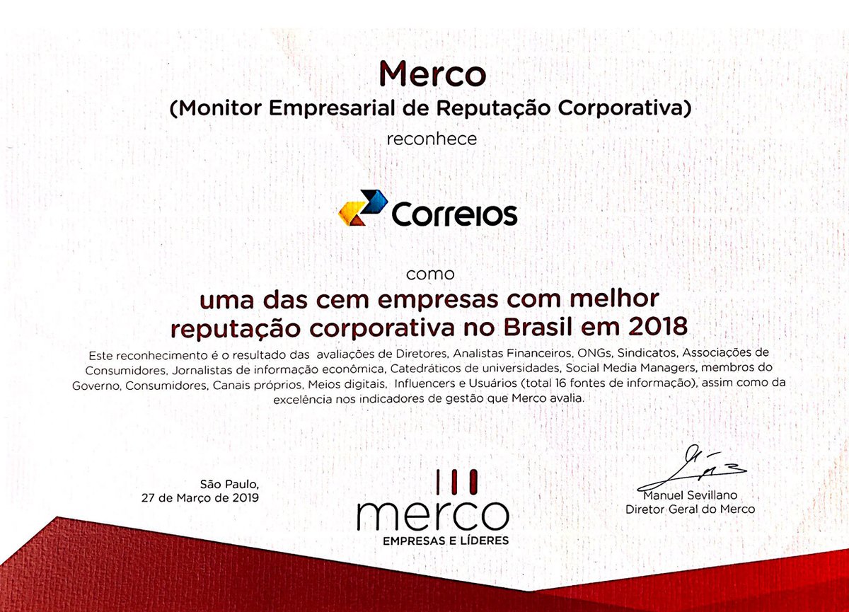 Pelo quarto ano consecutivo, os Correios ficaram entre as 100 Empresas com Melhor Reputação do Brasil. Somente três empresas públicas fazem parte desse ranking, realizado pela empresa @mercoranking em parceira com a revista @exame.
