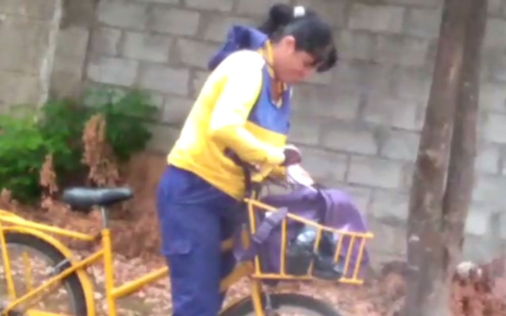 Funcionária dos correios rasgando correspondências.