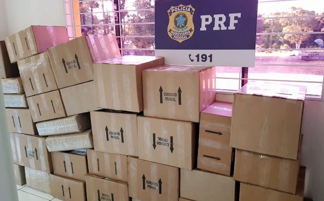 PRF flagra vinhos importados ilegalmente em caminhão dos Correios na BR 282 em São Miguel do Oeste